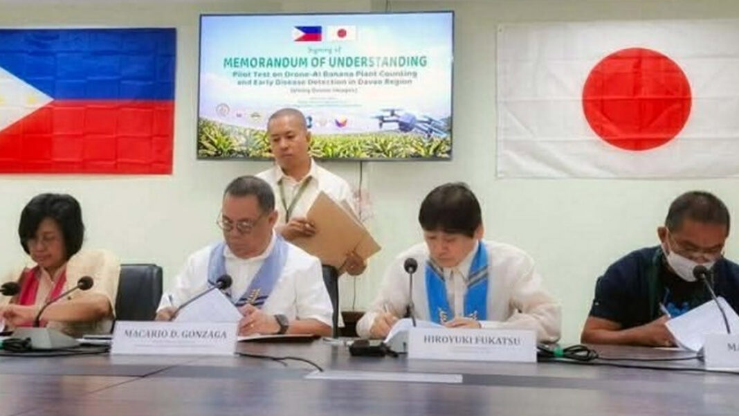 The Department of Agriculture in Davao Region (DA-11) signed a memorandum of understanding Monday with Japanese firm E-Supportlink Co., Ltd. to launch an artificial intelligence (AI)-powered drone pilot project for banana plant counting and early disease detection.