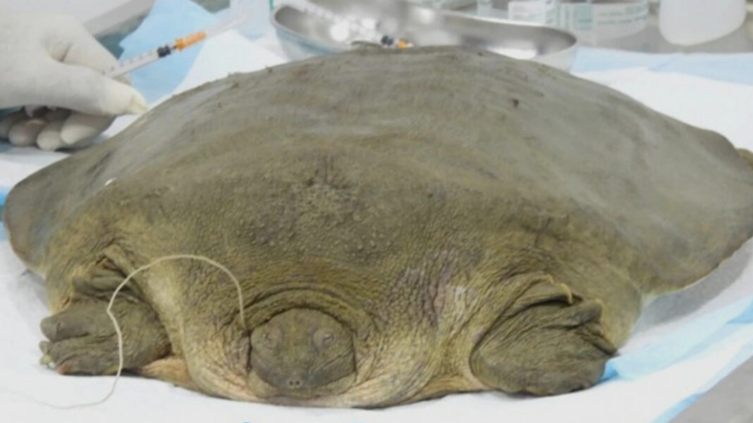 Cantor’s giant softshell turtles are classified as an endangered species by the International Union for Conservation of Nature due to their declining population.
