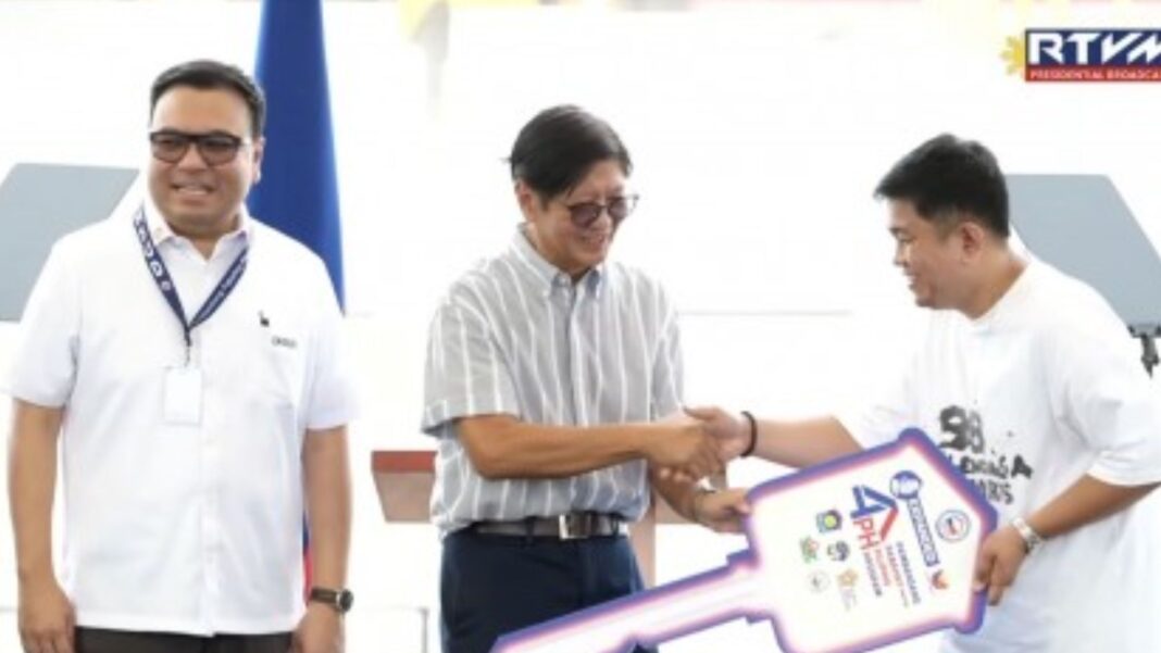 He also led the awarding of homes and assistance to beneficiaries of the Expanded Pambansang Pabahay Para Sa Pilipino (4PH) Program during the seventh anniversary celebration of the Department of Human Settlements and Urban Development at the Megawide Precast Plant in Taytay, Rizal on Feb. 16. (PNA)
