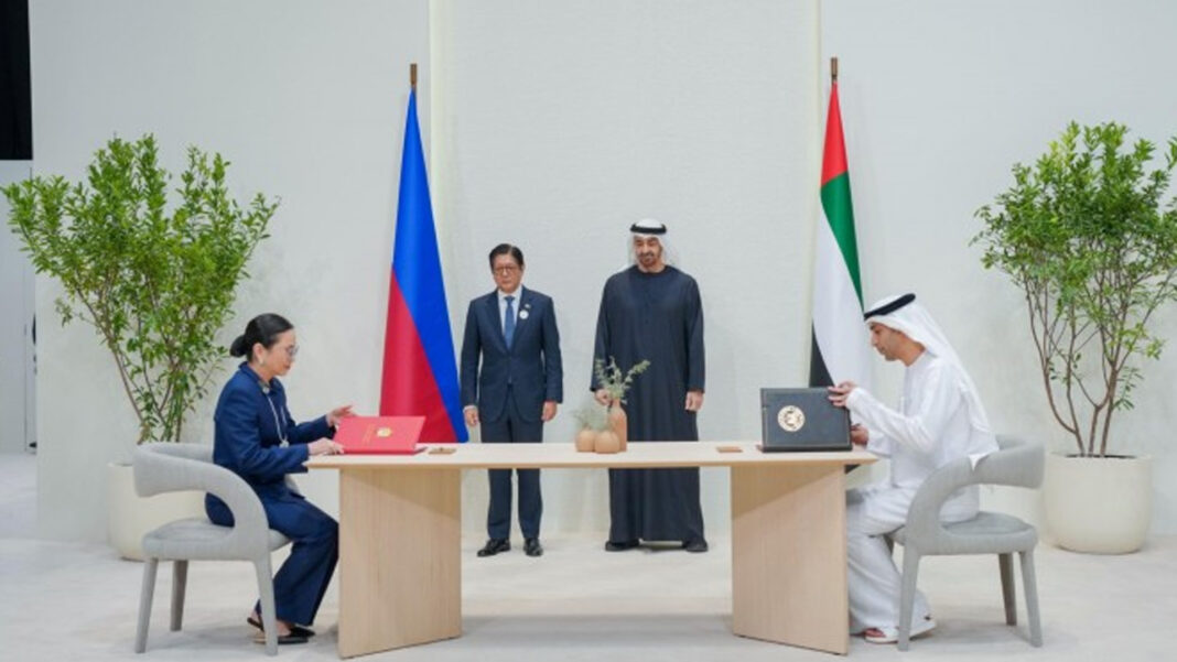 President Ferdinand R. Marcos Jr. and UAE President Sheikh Mohamed bin Zayed Al Nahyan witnessed the signing.