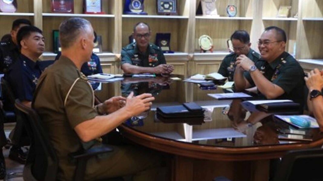 Joining the CSAFP in the call were Maj. Gen. Jose Maria Cuerpo II, the Deputy Chief of Staff (DCS) for Personnel, J1; Maj. Gen. Jeffrey Hechanova, DCS for Plans, J5; Brig. Gen. Fernando Reyeg, DCS for Operations, J3; Brig. Gen. Ferdinand Barandon, DCS for Intelligence, J2; Brig. Gen. Noel Beleran, DCS for Education, Training, and Doctrine, J8; Col. Leo Edward Caranto, Acting DCS for Logistics, J4; Lt. Col. Mark Allan Gavilan, Chief AFP International Military Affairs Center; and Australian Assistant Defence Attache Lt. Col. Tim Lopsik.