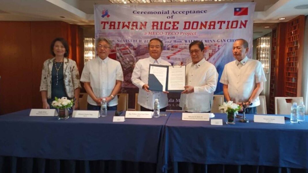 Taiwan donated 1,000 metric tons (MT) of milled rice to serve as additional supply to the relief and pro-poor programs of the Department of Social and Welfare Development.