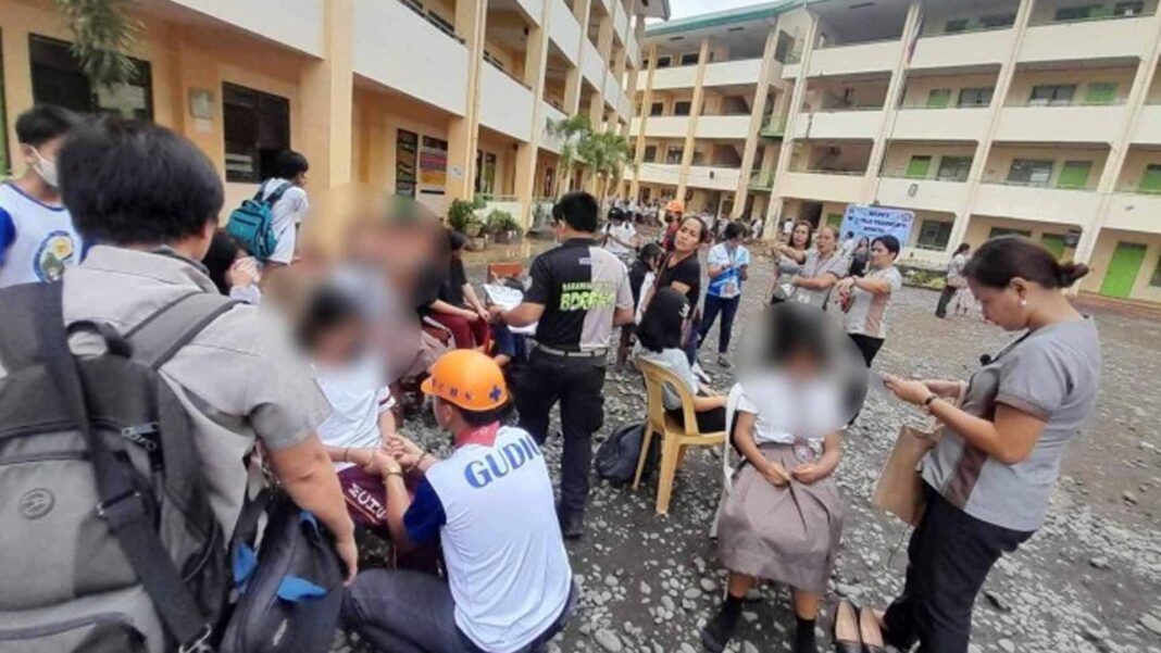 The reports said 125 students from various public schools were rescued – 38 were taken to hospitals while 88 were catered to on-site by the schools’ respective Barangay Disaster Risk Reduction Management Committee.